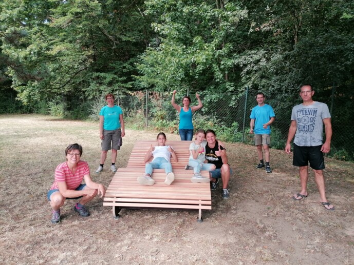 Leider kam jedoch Corona dazwischen und lt. der Hygienevorschriften war die geplante Umsetzung mit den Schülern und Jugendlichen nicht mehr möglich. So wurden die Liegen in einer kleiner Runde unter Einhaltung der Hygiene und Abstandsregeln dann doch noch fertig gestellt und konnten noch ein paar Wochen im Freibad genutzt werden.