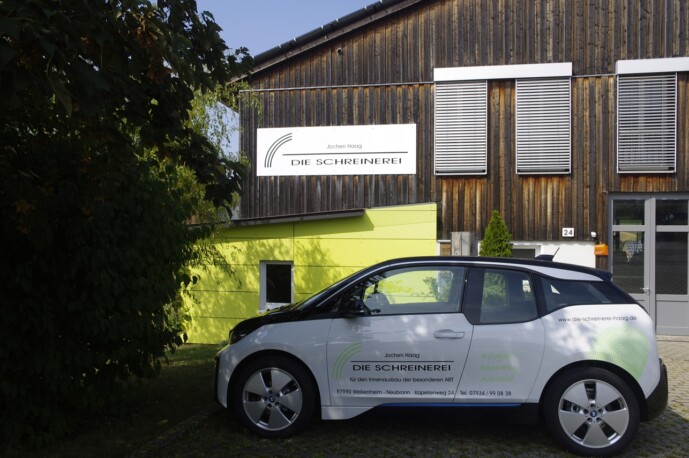 Zu unserer Firmenphilosophie zählt Nachhaltigkeit und Ressourcenschonung. Hierzu passt unser neues E-Fahrzeug.