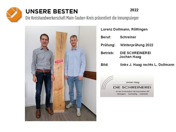 Wir haben die Lehrlinge der Schreiner Innung Main Tauber Kreis bei dem Projekt