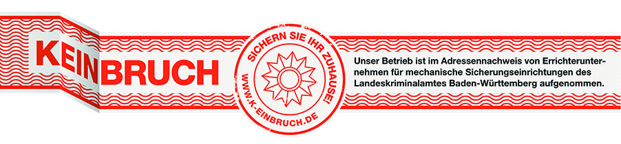 Auch alle weiteren, vom Landeskriminalamt Baden-Württemberg geforderten Voraussetzungen zur Aufnahme in den ,,ADRESSENNACHWEIS DER POLIZEI BADEN.WÜRTTEMBERG für Errichterunternehmen von mechanischen Sicherungseinrichtungen" haben wir erfolgreich erbracht.